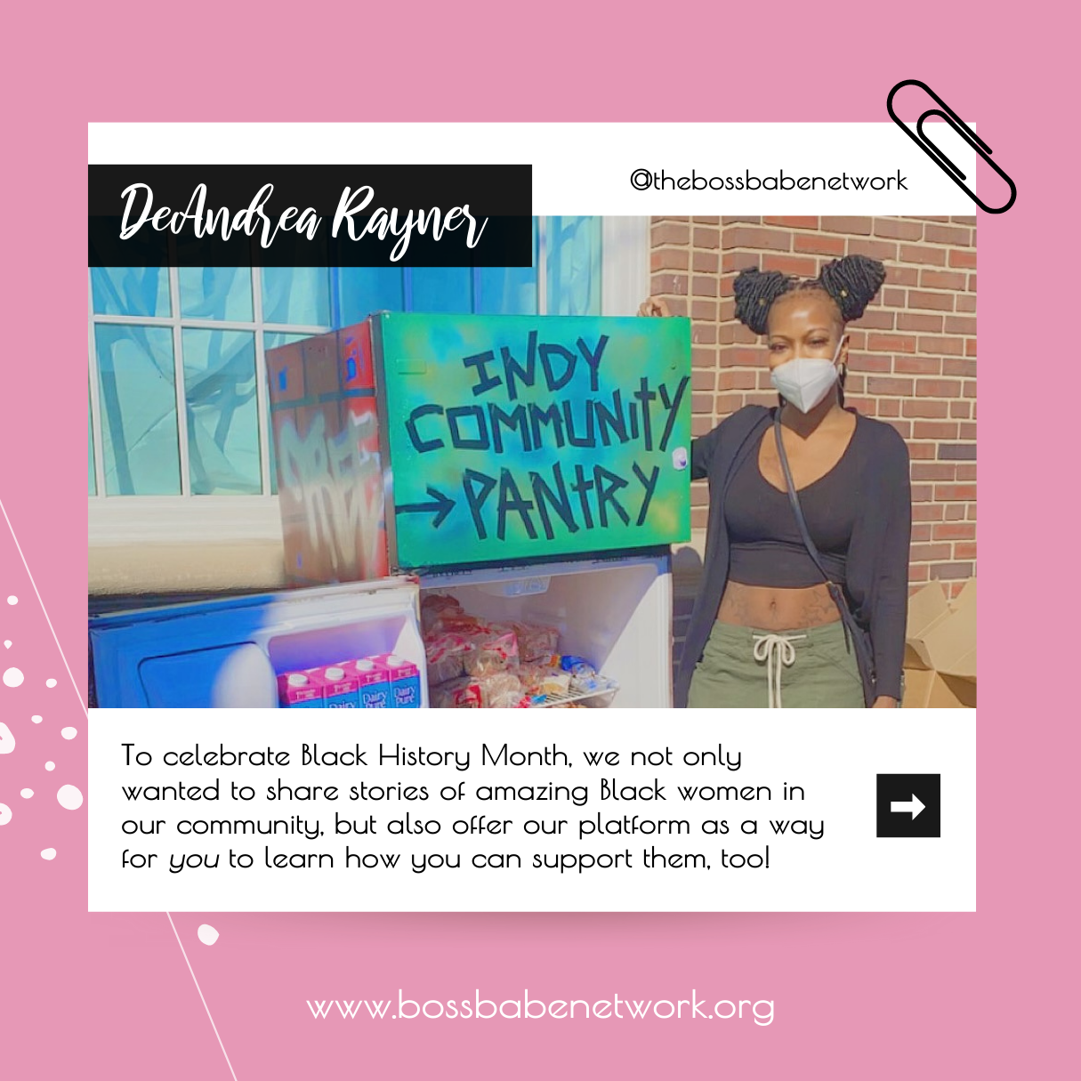 To celebrate Black History Month, we not only wanted to share stories of amazing Black women in our community but also offer our platform as a way for you to learn how you can support them, too! Meet DeAndrea Rayner of Indy Community Pantry.